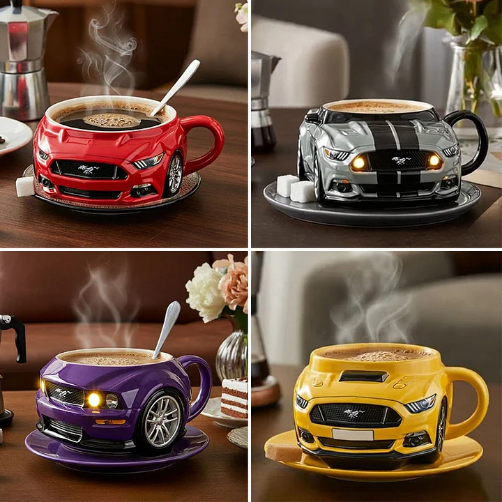 Ar rokām darināta automašīnas zīmola kafijas krūze