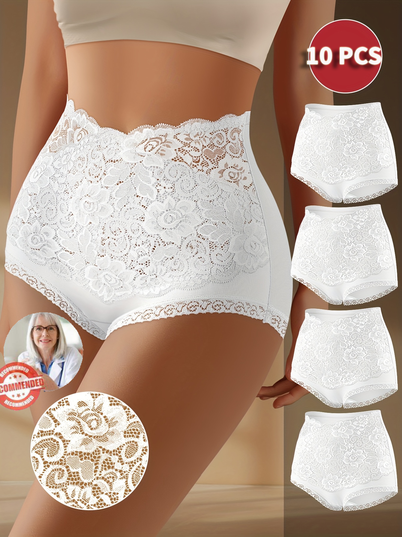 Polecane przez lekarzy — 10 sztuk — białe koronkowe bokserki damskie z wysokim stanem